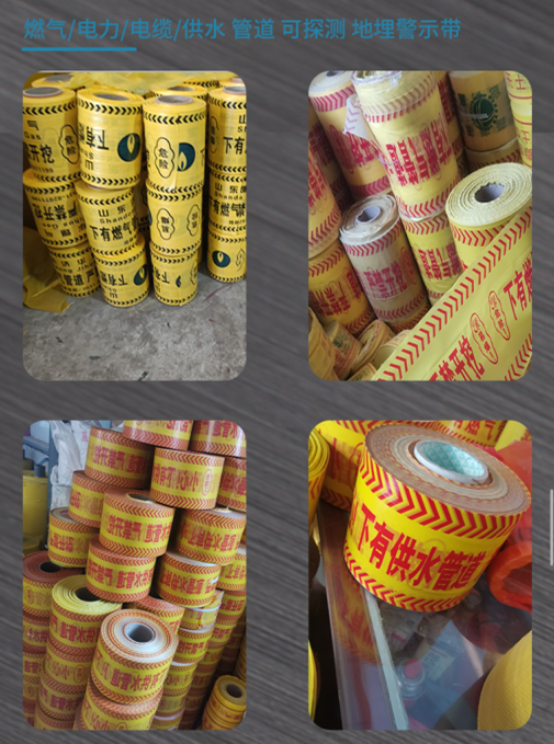 A 警示帶鋪設(shè)施工方便,施工與埋管同時進(jìn)行,埋覆與地下與管線中間,鋪設(shè)在管道上面30-50cm...